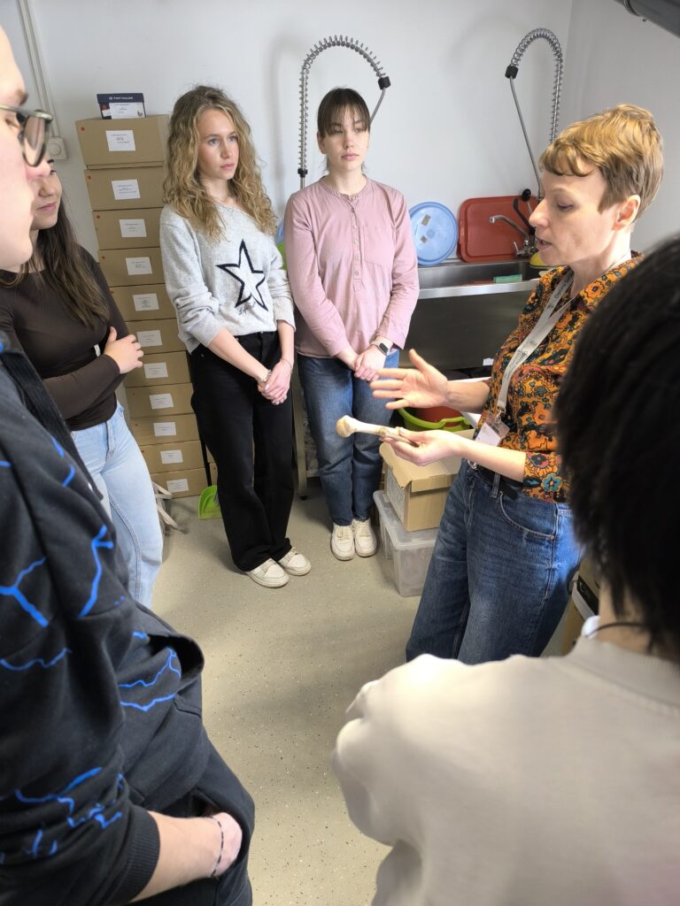 On Thursday, February 12, 2026, the Laboratory for Evolutionary Anthropology and Bioarchaeology was visited by students from the First Gymnasium in Zagreb, together with their professor Luka Mihelić. During the visit, the students learned about different aspects of the life and death of our ancient ancestors that can be obtained through the study of their biological remains.