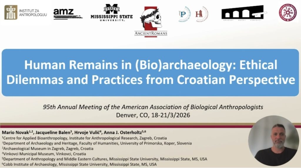 At the same meeting, Mario Novak gave an oral presentation entitled “‘Non-privileged’ individuals from Osijek (Colonia Aelia Mursa): Bioarchaeology of a Roman period mass burial”.